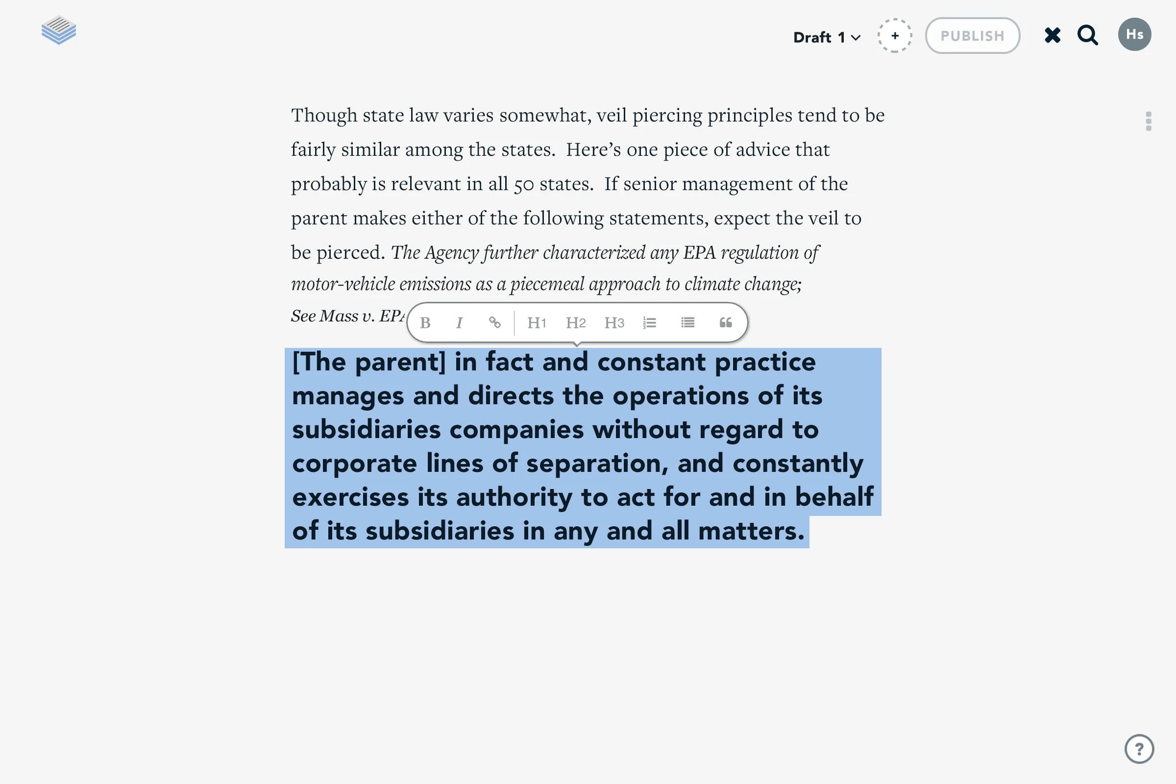 Casetext's mission was to not only change the way attorney's read the law, but also how they write about it. LegalPad was an in-browser text editor designed specifically for legal writing. Emphasis was placed on creating a zen writing space which gave users access to their previously bookmarked cases and passages.